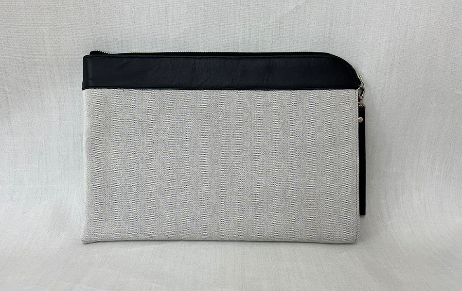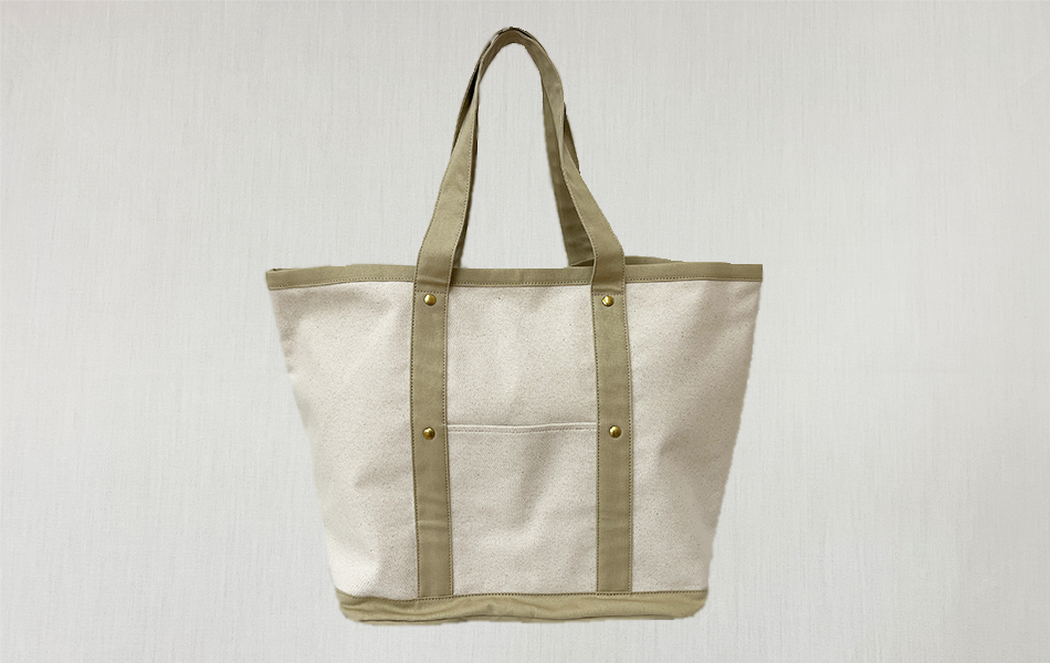 8号帆布と同等の目付のT/Cシャンブレーです。ヨコ糸にポリエステルを使用することで毛羽立ちにくく上品な印象を与えます。カジュアルすぎない落ち着いた風合いでレザーとの相性が良く、きれいめなバッグにもおすすめの素材です。コーティングを施していないため、柔らかさが必要な部分にはそのまま使え、ハリが必要な部分には裏貼りで調整が可能です。