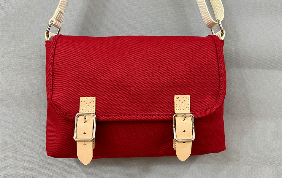はっきりとした綾目が印象的な帆布ツイルです。十分な厚みがあり、ツイル組織ならではの立体感が特徴です。8号帆布と同程度の目付を持つため、裏地を貼らなくても自立し、素材本来の力強さと上品さが一層際立ちます。染色時にハリを出す仕上げを施しているため、持ち始めから形がきれいに出ます。使い込むほどに柔らかく馴染んで風合いが増すため、長く愛用できる素材です。
