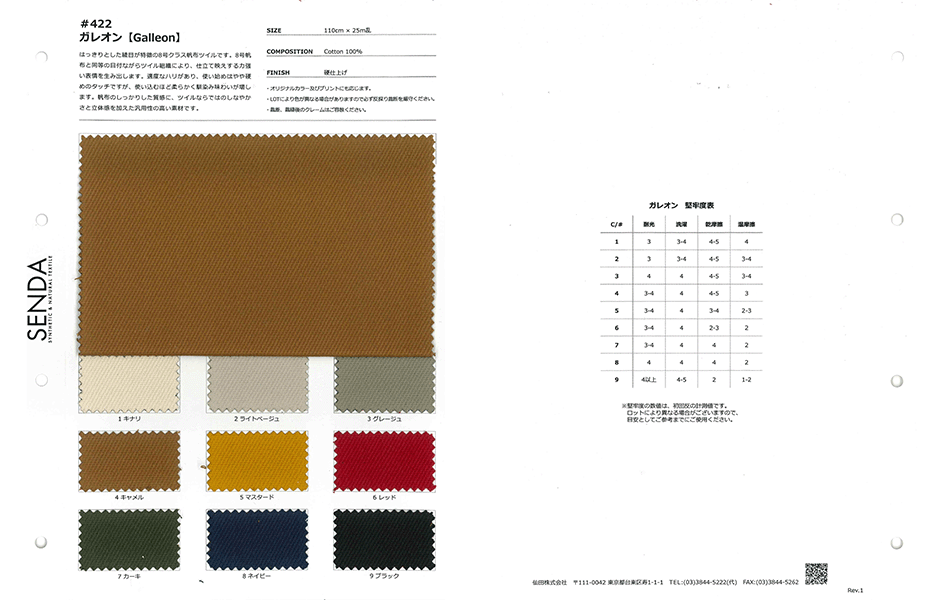 素材:綿100% 生地幅:110cm巾 巻き数:25m乱 色数:全9色 特徴:硬仕上げ